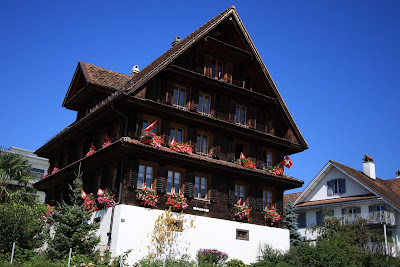 Next we worked our way out of Germany, thru Austria and Liechtenstein, to our next country (#8 if you’re counting), Switzerland. Our first stop was Appenzell, a well-known cheese region high in the alps. We’ve learned that one of the big reasons Switzerland is known for it’s cheese and chocolate is the abundant source for high quality milk. Every spring the cows are led up high in the alps where they graze all summer. Then in the fall, the farmers ceremoniously march their herd down from the “high country”, right through town and back to the farm. While the cows are away, some of the farmer's even clean the barn and rent beds made out of hay for willing tourists. While roughing it here and there is fun, the prospect of having our suitcases smell like manure did not appeal to us. Anyway, as if on cue, we had to make room for one of the farmers herds as soon as we pulled into town. After strolling through the village, changing our money to francs, and visiting the local cheese factory, we ventured on. Planning to stay the night in Zurich, we quickly bypassed the city (for the time being), finding accommodation prices to be crazy. We continued on towards Lucerne where we found much of the same, even the Hostel in town was $160. Switzerland is expensive! We finally settled on a hotel for one night and then found a great (and much more reasonable) apartment for the next four nights. Merlischachen, (they pronounce this one with lots of spit and phlegm) is situated just up the coast from Lucerne, and would become the jumping off point for the first leg of our Switzerland stay.